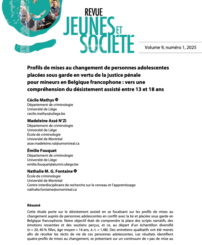 Mai 2025: Première publication autour du désistement assisté de jeunes en conflit avec la loi