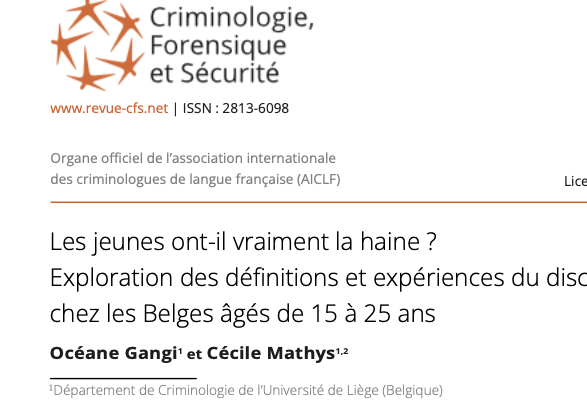 Octobre 2025: Publication sur le discours de haine en ligne chez les 15-25 ans